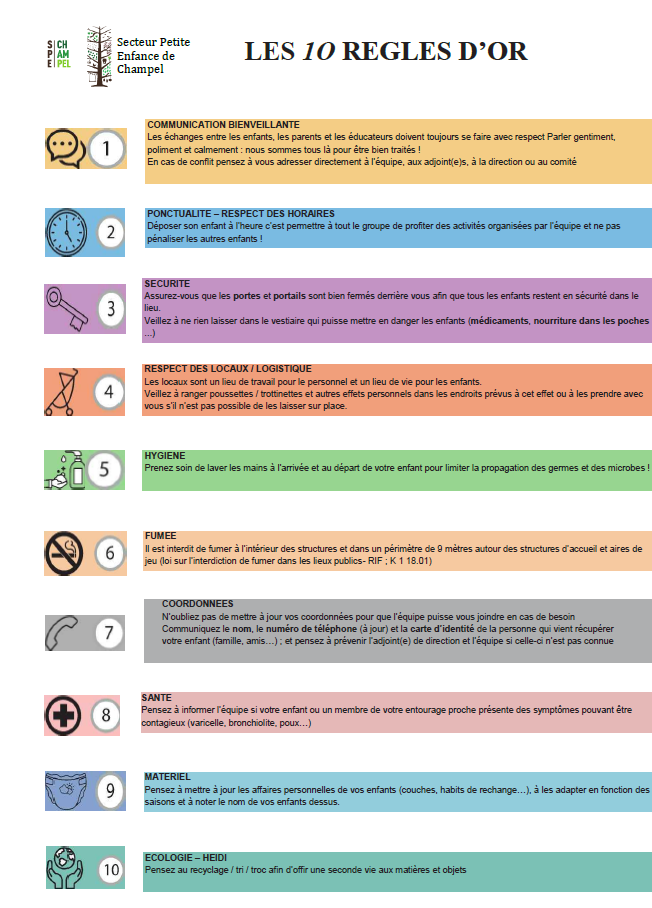 ❷D’offrir à l’enfant en âge préscolaire et à sa famille un environnement complémentaire à celle-ci, c’est-à-dire en assurant une sécurité physique, psychique et émotionnelle qui respecte ses besoins vitaux d’éveil, de repos, d’alimentation et d’hygiène.