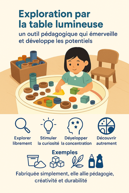 La table lumineuse est un outil pédagogique polyvalent, simple et durable, qui stimule :